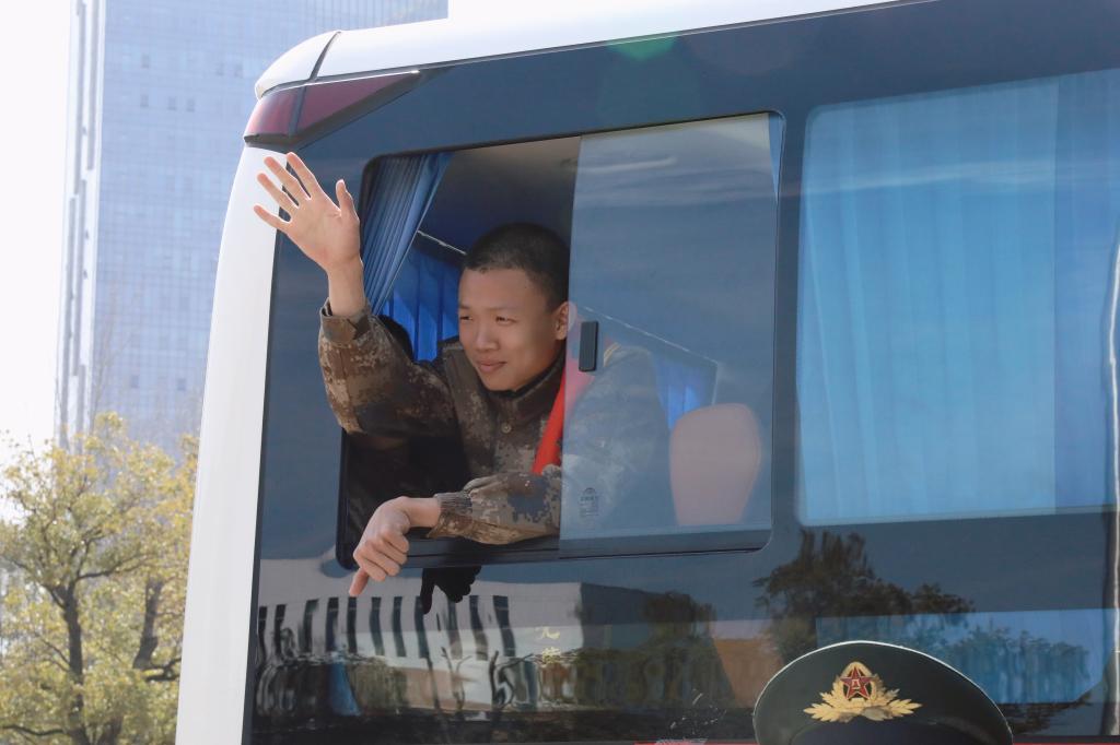 随后,军旅小号手程辉老师吹响“出征号角”,嘹亮的号声吹响了青春逐梦的序曲。校领导与全体参会人员一同前往校门口,为即将启程的入伍学生送行,目送他们登上前往军营的车辆,定格这一光荣而难忘的时刻。