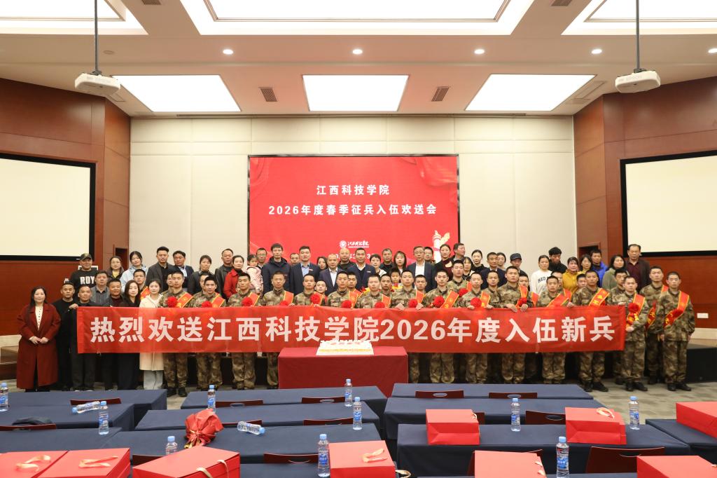 江科网讯(记者 刘莹)为扎实做好大学生征兵工作,激发青年学子参军报国热情,3月13日上午,我校在行政南楼第一会议室举行2026年度春季征兵入伍欢送会。校党委书记江延湖,校党委副书记、副校长闵桂林出席会议。各二级学院学工副院长、学工秘书及学生代表、家长代表参会。招就处处长吴丽娟主持会议。