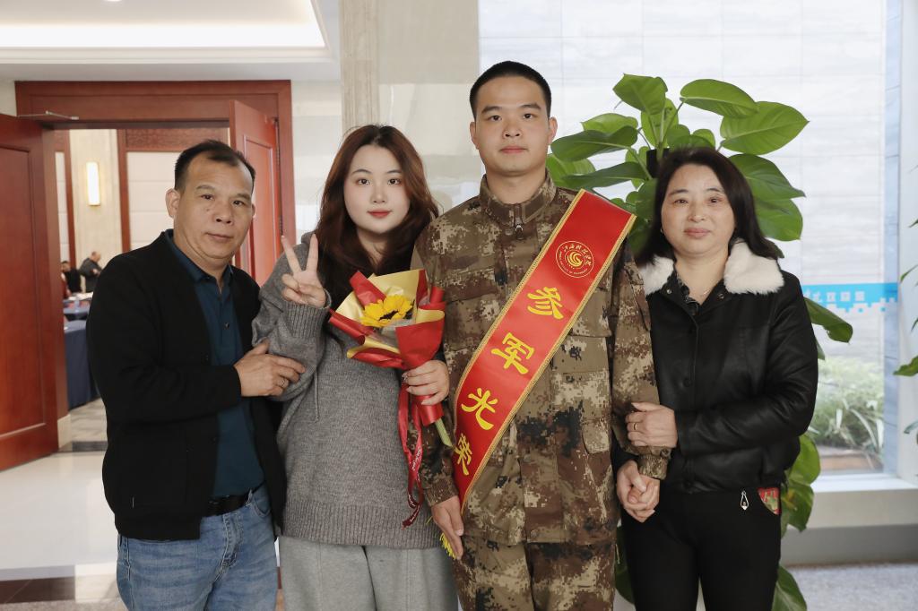 江延湖向光荣入伍的同学们致以崇高敬意,向支持国防建设的家长们表示感谢。他向入伍同学提出三点希望:一是永葆忠诚本色,始终听党指挥。把“听党话、跟党走”刻在心里,将红色基因融入血脉,以绝对忠诚的政治品格,践行“强军有我、强国有我”的誓言。二是苦练过硬本领,做到能打胜仗。把训练场当战场,在摸爬滚打中练就军事本领,磨砺军人血性,努力成为合格尖兵,擦亮“江西好兵”名片。三是发挥知识优势,勇于开拓创新。最后,江延湖勉励同学们珍惜军营机会,在强军实践中勇挑重担、建功立业。