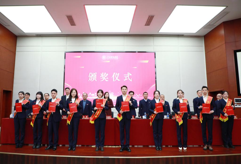 江延湖宣读《关于表彰2025年度优秀教学质量奖获奖教师的决定》。校领导为获奖代表依次颁奖。