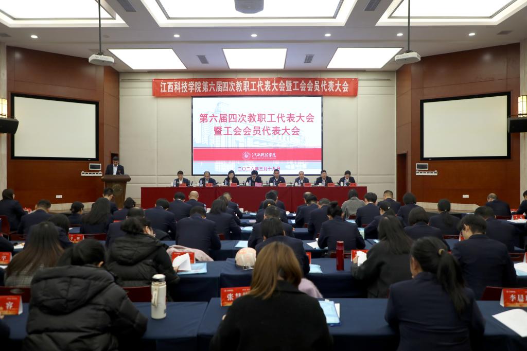 江科网讯(记者 何强江 刘莹)改革创新促发展,策马扬鞭开新局。3月19日,江西科技学院第六届四次教职工代表大会暨工会会员代表大会(以下简称“双代会”)胜利召开。学校创办人于果、理事长喻恺、校党委书记江延湖、校长张海涛等全体校领导,以及大会正式代表、列席人员近200人齐聚一堂,统一思想认识,凝聚发展智慧,明确前进方向,为学校在新征程上奋力谱写高质量发展新篇章汇聚磅礴力量。