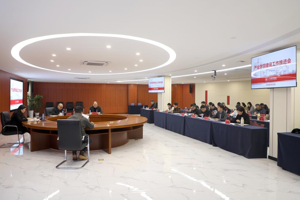 江科网讯(记者 何强江)3月26日,校长张海涛在行政南楼第六会议室主持召开产业学院建设工作推进会,深入剖析产业学院建设现阶段存在的问题,围绕产业学院建设的核心目标、关键任务和落实举措提出明确工作要求,强调要以产业学院建设为重要抓手,真正实现产教深度融合、校企深度合作,切实提升应用型人才培养质量。副校长王涛涛出席。