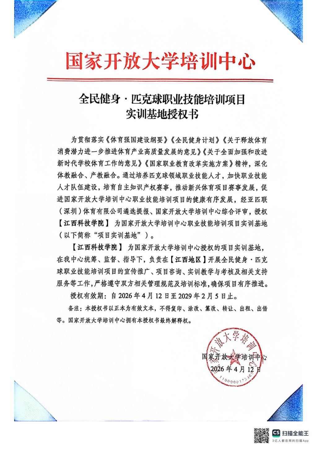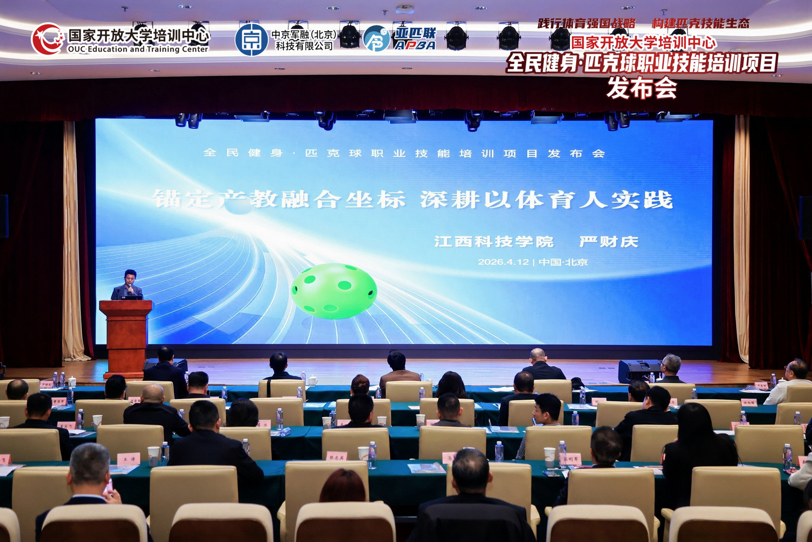 江科网讯(通讯员 张业波 记者 何强江)4月12日,全民健身・匹克球职业技能培训项目发布会在国家开放大学(五棵松校区)举行。作为国内高校体育育人与体育服务创新的积极践行者,我校受邀出席本次大会,并在会上被授予全国首批“全民健身·匹克球职业技能培训项目实训基地授权书”,标志着学校在新兴运动专业人才培养领域迈出关键一步。