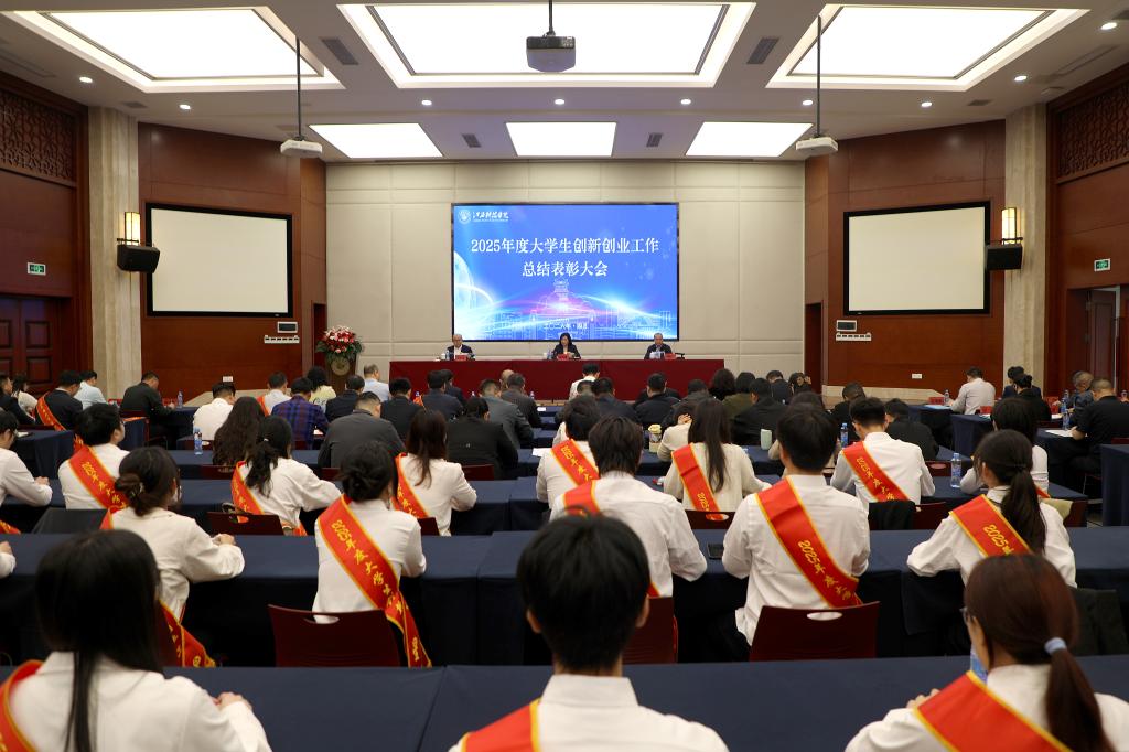 江科网讯(记者何强江)创新引领未来,创业成就梦想。4月17日,我校举行2025年度大学生创新创业工作总结表彰大会,全面回顾创新创业与学科竞赛亮眼成绩,表彰先进集体与个人,动员全校师生乘势而上、接续奋斗,以更强担当、更实举措推动双创教育再上新台阶。校长张海涛出席并讲话,校党委副书记、副校长闵桂林主持会议,副校长王涛涛宣读表彰决定。大学生创新创业工作领导小组成员及相关部门负责人,各学院院长、副院长、科级干部及师生代表参会。
