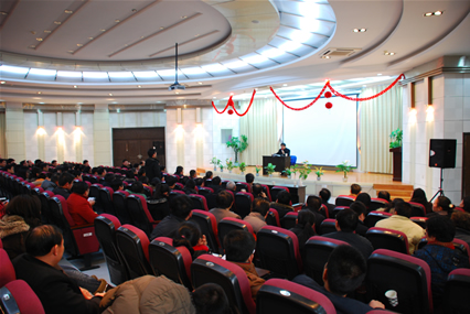 2009年1月18日下午,在图书馆二楼报告厅,瑶湖教学口副科级以上干部会议在这里召开,许祥云副院长部署了寒假和开学后的相关工作,对调整后的领导班子提出了要求;学院副书记、副院长周万华也就党建思想政治工作和安全保卫工作做了部署。