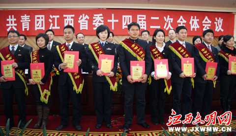 1月13日,在共青团江西省委十四届二次全体会议上,我院自强者之家团支部副书记杨永刚等10名同学被授予江西省“十佳优秀基层团干部”荣誉称号。省委副书记王宪魁、副省长孙刚出席会议并为获奖者颁奖。