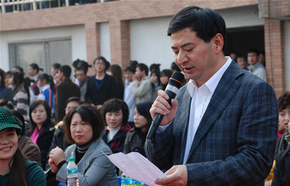 阿丘等央视著名主持人将10个签有东方时空队员名字的足球送给在场师生