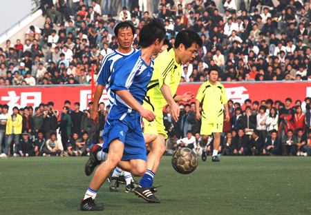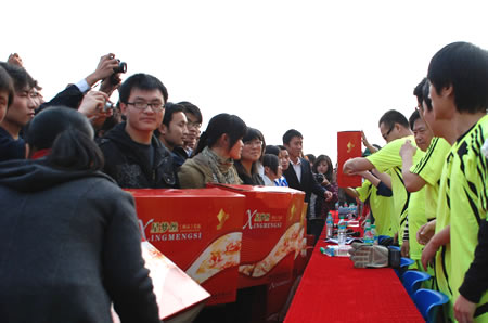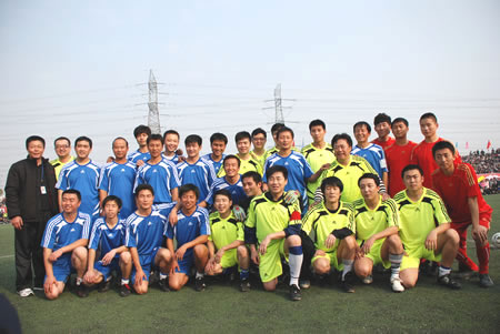 下午,“东方时空明星足球队”与蓝天学院教师足球队的友谊赛,在学院奥林匹克中心拉开了帷幕。比赛进行得紧张激烈,双方你来我往,精彩镜头纷呈。观众席上响起阵阵加油声和喝彩声。赛前半小时,“东方时空明星足球队”还向蓝天学院40名残疾、家庭困难的学生每人捐赠一床毛毯,给蓝天学子送来了温暖。比赛过程中,由李小萌、郭思语、施丹、周洲等央视著名女主持人组成的啦啦队与现场观众互动。比赛中场休息和结束时,“东方时空明星足球队”上场队员向观众抛送签名足球,现场气氛热烈。
