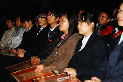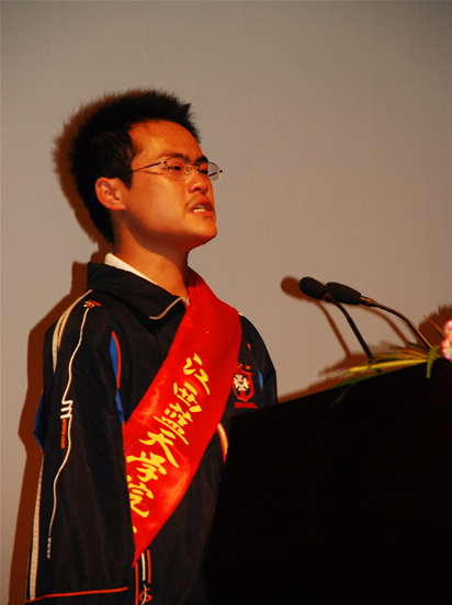 会上,团委书记周小丰宣读了表彰决定,团省委和院领导给先进集体、优秀个人、第三届十佳团员自强之星颁奖,院第二届十佳示范社团——学院自强者之家会长杨永刚、优秀团员青年代表李洁作为获奖代表发言,第三届十佳团员自强之星代表骆春晖、何子龙作了首场自强之星事迹巡回报告。代表们的发言声声感人、让人奋进、催人泪下,特别是京东校区外语外贸系断臂学子何子龙,在讲述自己6岁时失去双臂的痛苦,漫漫求学之路的艰辛的时候,以及一遍又一遍地呼喊“我要读书”的时候,当他含着泪梗咽地说“在家里生活条件这么坚苦的情况下,我还要求读书,可能是自私的,但如果我不读书,我除了是一个没有双臂的残疾人之外,便一无所有,那我拿什么来报答我的父母,所以,我一定要读书,不管前面的路有多么难走,我读书的信念永不改变”的时候,台下响起一阵又一阵雷鸣般的掌声,领导和同学们都被感动了,有的甚至失声痛哭了起来。