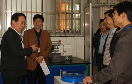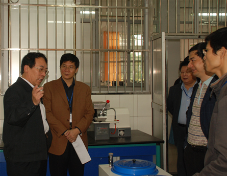 厦门大学副校长邬大光教授(左一)考察我院实训中心,了解办学情况
