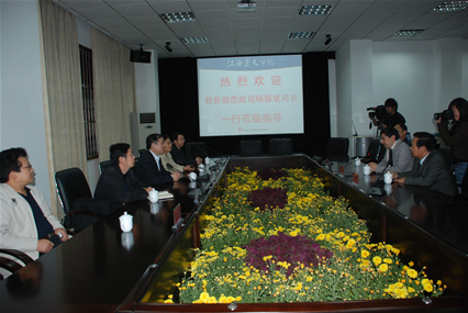 10月26日下午,全国第七届民办高校德育论坛前夕,教育部思政司司长杨振斌在我省教育工委副书记史蓉蓉、组织部部长杨波、省教育厅社政处处长汪立夏等陪同下,莅临我院考察指导工作,我院于果董事长、党委书记郑守华、院长王志锋早早等候在校门口,热烈欢迎教育部、省教育厅领导的到来。