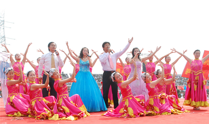 接下来的文艺表演,精彩纷呈,红樱束赤焰女子打击乐团带来的极有震撼力、冲击力的打击乐、我院上演的曾经获得全省一等奖的健美操、著名歌星王菲的成功模仿者颜佳欣天后级的歌声迎得了在场的阵阵喝彩声,而以《不要再来伤害我》一曲成名的著名歌星张振宇的出场,更是引起了全场的骚动,将整个文艺演出推向高潮。