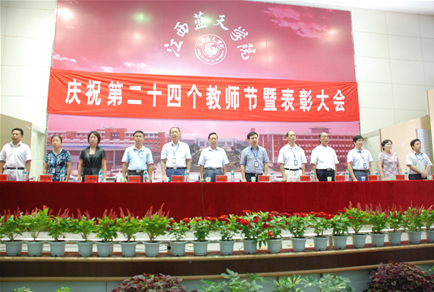 9月9日下午3时,在瑶湖校区学术报告厅A厅,我院召开庆祝第24个教师节暨表彰大会。大会通报了学院被省教育厅批准的江西省高等学校中青年学科带头人、中青年骨干教师和江西省师德建设先进集体、先进个人;表彰了江西蓝天学院教学名师和07-08学年度师德建设先进集体、先进个人。于果董事长、党委书记郑守华、院长王志锋,学院顾问章启明教授、副院长汪茂湘、吴吉平、许祥云、章新蕾、林素君、焦扣云、周万华、胡剑锋亲临大会现场。王志锋在会上作了重要讲话。