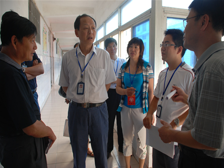 在京东校区巡视现场,院长王志锋在副院长吴吉平、许祥云、所在系主任、班导等的陪同下,深入各教学楼,走进教室,巡视教学,整体情况反映良好,教师们精神饱满,教具、教案准备充分,同学们到课率高,都在80%以上,上课聚精会神。其中也有个别班级因种种原因,到课率不太理想,影响了教学秩序的正常进行。京东教学部主管院长吴吉平,要求系主任负责立即查明原因,以确保学生安全和教学的正常进行。在教学巡视之后,王志锋一行到军训现场看望了正在辛勤操练的2008级新生和教官,询问教官和同学需要学校解决的困难、鼓励他们再接再厉,将军训搞好。