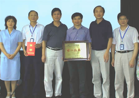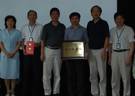 图为档案规范化管理评估专家组与我院领导合影(左起:陈新、王志锋、张安南、于果、谭向文、许祥云)