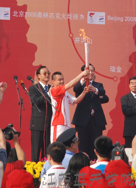 8时左右,江西省委常委、南昌市委书记余欣荣亲自将火炬交给第一棒火炬手——奥运跳水冠军彭勃。自此,2008北京奥运火炬在南昌开始了以八一广场为起点、长三十余公里的传递。(图/文:陈旻)