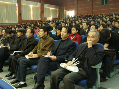 全体教职工党员仔细聆听郑守华关于2008党委工作报告