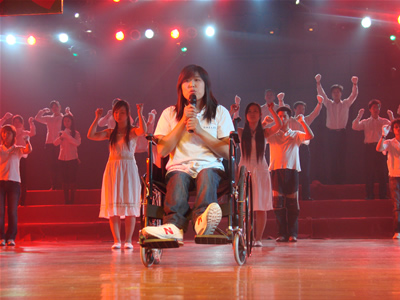 美丽的姑娘丁云杰来了,她在舞台上倾诉着自己的心声,对于校长的心声,原来,于校长在知道了云杰的事后,给她免掉了所有的学费,以及对她在学习生活上给予无微不至的关怀,对于这些,云杰唯一能做的只有好好学习,报答这份浓厚的师生情。