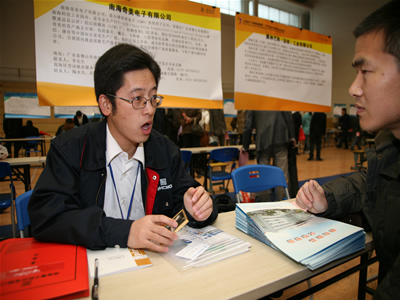 曾和我院共建过订单班的汉达精密科技有限公司,是一家制造电脑绝缘材料、塑胶制品等的台资企业,这次也派出专人来参加洽谈会。该企业人事部的小董介绍说,汉达公司已在南昌昌北买地2100亩建了新厂,明年3月将批量投入生产,未来3年将有3000多名员工的需求量,他希望通过这次洽谈能有所收获。