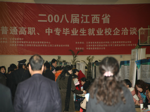 根据《关于举办江西省2008届普通大中专院校毕业生就业校企洽谈会的通知》(省赣教就字[2007]5号)文件的要求,“江西省2008届普通高职、中专毕业生就业校企洽谈会”于今天在江西蓝天学院瑶湖校区体育馆举办。这是我省第一次举办普通高职、中专毕业生就业校企洽谈会,也是我院首次承办这种全省性的校企洽谈会。