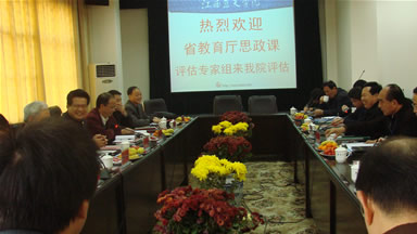 12月3日,省委教育工委宣传部部长、省教育厅社政处处长汪立夏为领队,江西省师范大学思政部主任汪荣有为组长的“思政课”评估专家组一行六人来我院,对我院的思想政治理论课的教育教学情况进行评估。受到我院于果董事长、院长章启明、党委书记郑守华、副院长汪茂湘及相关工作同志的热烈欢迎。