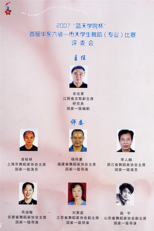 2007“蓝天学院杯”首届华东六省一市大学生舞蹈(专业)比赛评委会名单