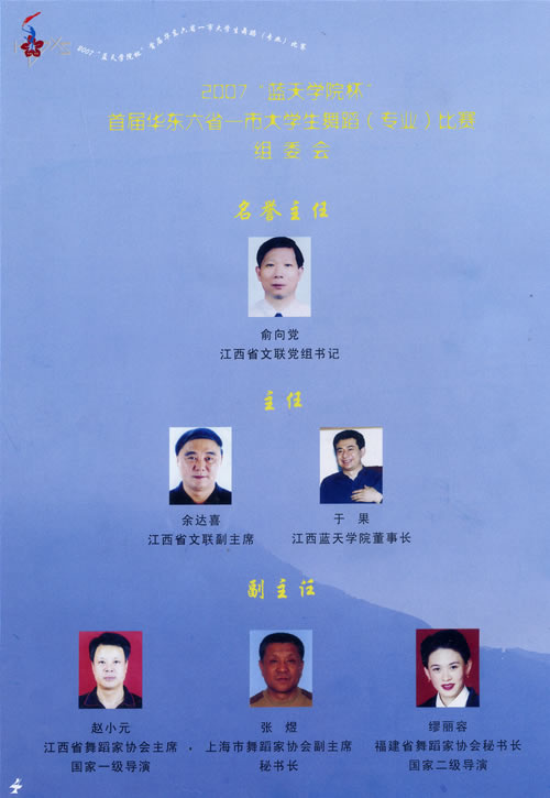 2007“蓝天学院杯”首届华东六省一市大学生舞蹈(专业)比赛组委会名单
