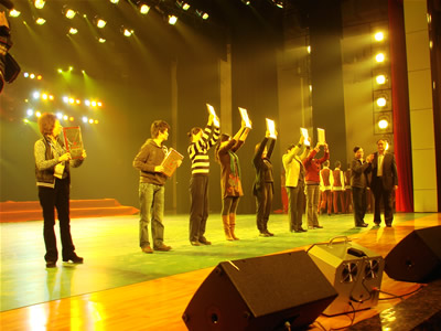 2007“蓝天学院杯”首届华东六省一市大学生舞蹈(专业)比赛于11月15日在蓝天学院圆满结束,并于即日晚在蓝天学院蓝海大剧场举行颁奖晚会,出席晚会的有大赛组委会和评委会各成员。