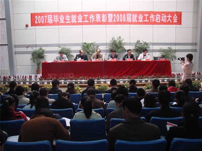 10月15日,在党的十七大胜利召开的第一天,我院在学术报告厅B厅召开了2007届毕业生就业工作表彰暨2008届就业工作启动大会,为学院的和谐、为社会的和谐添砖加瓦。这个会议无论是对学生还是对学院,意义都十分重大,所以院领导很关心、系领导很关心、班导也很关心。出席会议的院领导有于果董事长、院长章启明、党委书记郑守华、副院长汪茂湘、吴吉平、胡剑锋博士。