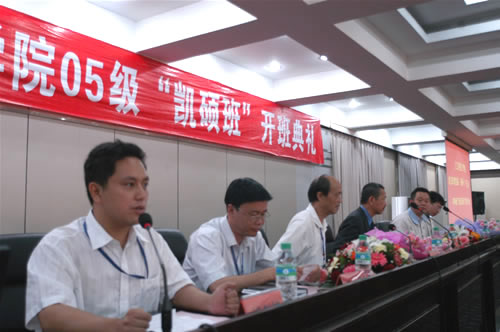 京东校区电子制造系主任刘勇也发了言,表了决心,他们有信心能把由55名学生组成的05“凯硕”班办好。