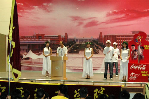 为迎接2008年北京奥运会的成功举办,我院在四月份还在全院两校区成功举办了万名师生长跑健身迎奥运等活动。在这次奥运火炬“祥云”传递活动中,院团委、保卫处、学工处和总务处及学院相关宣传部门都进行了精心准备。在全院学生中选拔出了46人作为火炬方阵,当火炬到达校门口时,圣女把火炬亲手传递与副院长周万华,周院长神圣地高举着火炬沿着学院主干道步入学院学术报告厅。