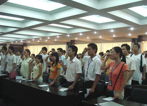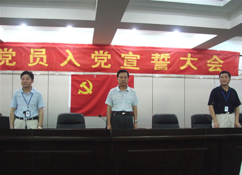 宣誓大会由郭安海同志主持,宣誓仪式在雄壮而嘹亮的国际歌声中开始,组织部长邓国金同志带领新党员进行庄严而又神圣的入党宣誓。