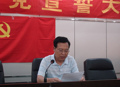 在建党86周年到来之际,院党委于6月22日下午,在瑶湖校区行政南楼三楼会议室举行了新党员入党宣誓大会。学院党委书记郑守华、党委委员、党办主任兼统战部部长郭安海、组织部部长邓国金等出席大会。与会人员还有两教学部党总支、党支部负责人和新党员以及30多名入党积极分子列席了宣誓大会。