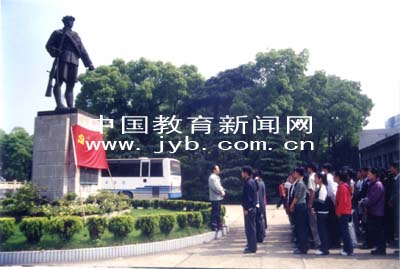 学院新党员在烈士塑像前开展党组织活动