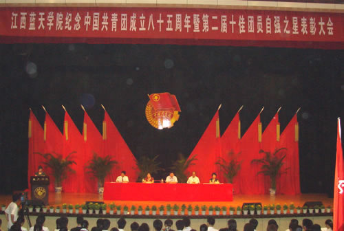 2007年5月25日下午,在学院剧场,激情高昂的团歌声中江西蓝天学院纪念共青团成立八十五周年暨第二届十佳团员自强之星表彰大会隆重召开,出席大会的领导有学院董事长于果、院长章启明、副院长章新蕾、林素君,来自学院的团员代表近1500人参加此次大会。