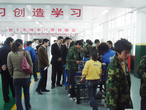 到会人员参观了江西蓝天学院汽车实训中心。