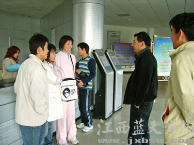 12月2日下午3时许,于果董事长亲临图书馆视察工作。首先他充分肯定了大流通这种服务模式方便了读者,让读者在图书馆能便捷地借阅到自己所需的图书。之后现场解决了图书馆建设发展中的一些具体问题。其间于董事长巧遇了几位正在图书馆借书的学生读者,他亲切地询问他们对图书馆目前的流通模式的感受及对图书馆的发展方向有什么建议,同学们一一回答了于董事长的问题。于董事长还对其中的一位残疾学生问寒问暖,并亲切地说:“有什么困难,可以打电话找我。”那位同学连连点头,并谢谢于董事长的关心。于果董事长最后希望图书馆能百尺竿头,更上一层楼,努力把服务水平和质量做到最好。
