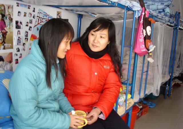 去年10月16日下午,3号公寓楼319室的钟同学突发疾病,嘴唇发紫,喘不过气,被该栋的宿管员姚庆菊查房时及时发现了。她一边打电话报告校110派车救护,一边背钟同学下楼。医生说,幸好送来得快,再晚几分钟,可能危及生命。钟同学清醒后就抱着姚阿姨说:“姚阿姨你比我妈妈力气大。” 姚阿姨平时在生活上对同学们无微不至地关怀,让他们深受感动。