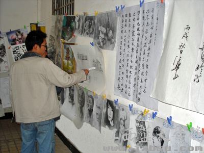 另外,学校的建筑也成为同学们创作的主要素材。06级艺术设计系(5)班同学用简约而不简单的线条勾勒出的s1栋、图书馆、京东校区教学楼,棱角分明,栩栩如生。水墨画“蓝天阁”精致到连阁边的小树都清晰可见。前不久我院举行的“菊展”摄影、绘画作品,也出现在此次展览中。(图文:孟渊)