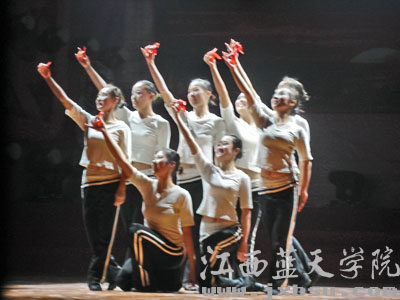 晚上7:00,在大型歌舞《踏歌起舞》中,教师专场也拉开了帷幕。教务处老师们表演的舞蹈《雪域阳光》,美妙的舞姿似乎把现场的观众带到了那宁静而圣洁的雪域高原。如果说教务处老师们的表演是“静”和“美”的话,那外事处老师的表演就是“逗”和“乐”。外事处的两位老师为我们带来的双簧表演诙谐幽默,使台下观众笑的前伏后仰,不时发出阵阵掌声。既然是教师专场,外教们的表演自然是不能少。外教不仅给我们带来了精彩的节目,还用汉语说:“我爱蓝天,我爱中国!”现场观众也一起对外教们说:“happy new year!”互相祝福新年。现场气氛其乐融融。这台纯粹由我院教师们表演的专场,展现了我院教职员工的多才多艺。
