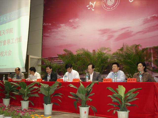大会由学院党委书记兼院长章启明主持。首先,省教育厅社管处长侯铁军宣读了省委教育工委、省教育厅为了贯彻省委关于加强对民办高校的监督和管理的指示精神,派出三个督导工作组进驻十所民办高职院校的通知等三个文件。接着,省教育厅督导工作组组长姚绍平、学院董事会董事长于果、省教育厅助理巡视员万普海分别讲了话。