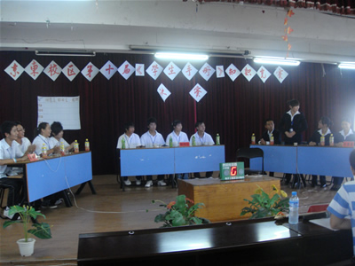 赛场及规则很正式,阵容很强大,三方代表队过关斩将,在初赛复赛中,表现突出,用实力杀进决赛。一睹他们的神情及自我介绍,便感知到了骁将的力量。现场比赛精彩激烈,充分的准备、沉稳的状态、犀利的眼神、响亮的答辩,无不展示出我校09新生昂扬自信的风貌及较强的综合素质。