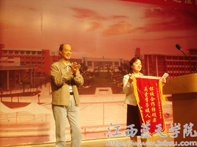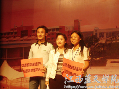 到场听报告会的有来自两校区800余名学生。首先是由中国银行南昌解放西路支行何行长代表银行干部职工向我院十佳自强之星李进、朱杰生分别捐赠助学金2000余元,院长、党委书记代表学院向中国银行南昌市解西支行赠送锦旗。爱心基金受益学生代表李静同学宣读感谢信,对中国银行南昌市解西路支行关爱表示感谢。