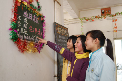 笔者3月8日中午走进校内学生宿舍7栋,正好碰到了今天的小寿星——318室的王媛,她说:"平时我很少和大家交流,想不到今天会有几十个同学向我祝贺生日,我真的很感动。"