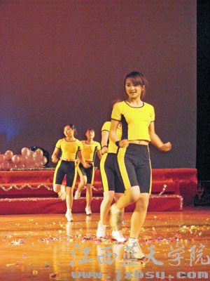 文艺汇演由吉他协会大前门乐队的一曲《奔跑》带动了全场的热烈气氛。此次汇演的节目是由各社团自编、自导、自演的各种文艺节目轮番精彩上演。台下的观众不时报以热烈的掌声和欢呼声。其中由礼仪队带来的《走秀》和营销协会的街舞表演将整场晚会推向了高潮。走秀环节礼仪队成员身着一套套精美绝伦的服装出场,高贵的红色晚装、时尚的黑色经典、俏皮可爱的白色公主裙和帅气十足的牛仔装在模特身上得到了完美的诠释。