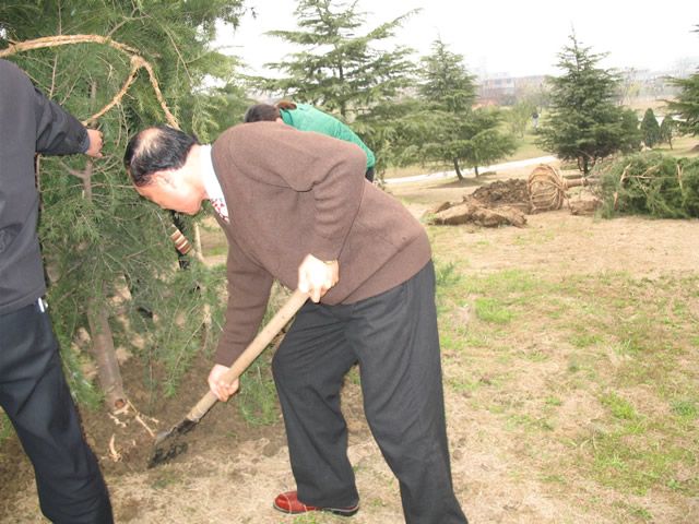 3月17日上午8:30,瑶湖教务处全体成员在主管院长汪茂湘同志的带领下,来到生态园松柏区,他们拿着铁锹、洋镐,满怀激情、热情万分。植树之前,汪院长向大家宣传了学院开展植树活动的意义。他说,学院将以系为单位,开展为期一个月的植树活动,进一步绿化美化新校园,培养师生热爱劳动的良好习惯。接着,他带头挥起铁铲,很快就挖好了一个植树坑,栽下了一颗以个人名义购买的3米多高的雪松;教务处的同志也纷纷挥起了工具,火热地干了起来。雪松高大、挺拔,象征着蓝天的事业在于果董事长、汪茂湘副院长等领导的带领下,生机勃勃,蒸蒸日上。