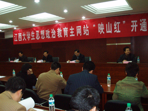3月17日下午,由江西省教育工委宣传部、江西省教育厅社政处具体指导、江西财经大学等16所高校齐心协力,经过半年多时间策划和制作的江西大学生思想政治教育主网站“映山红”(又称“江西大学生在线”)在江西财经大学蛟桥南区综合楼11楼第二会议室举行了开通仪式。