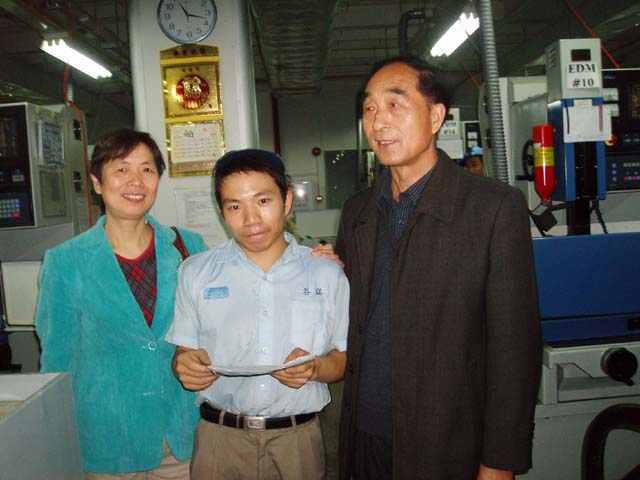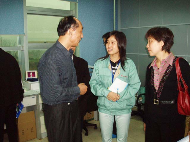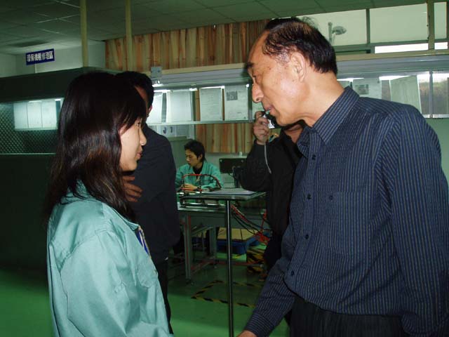 接着,考察组来到生产线上参观,见到了学院的毕业生。当一声声问候传到同学们耳畔,一双双手热情地握住同学们的手时,同学们激动万分。他们说,真是想不到,我们才离校两个多月,学校就派人来看望我们。我们只有努力工作才能报答学院的培养的关怀。