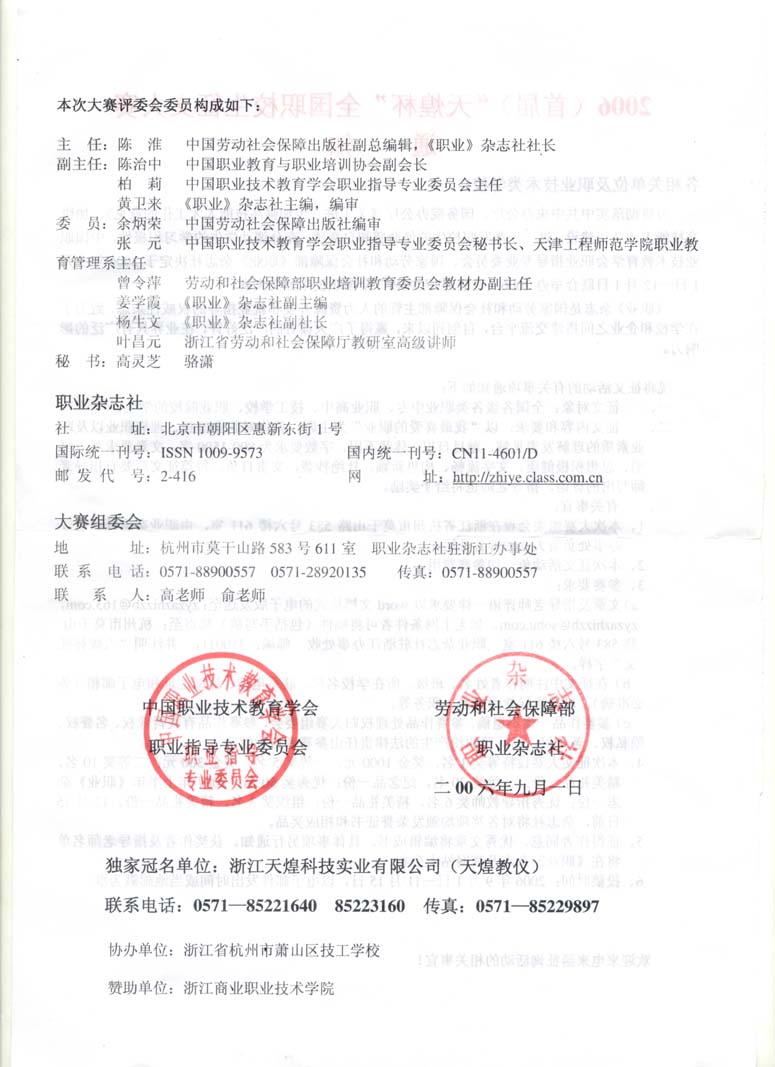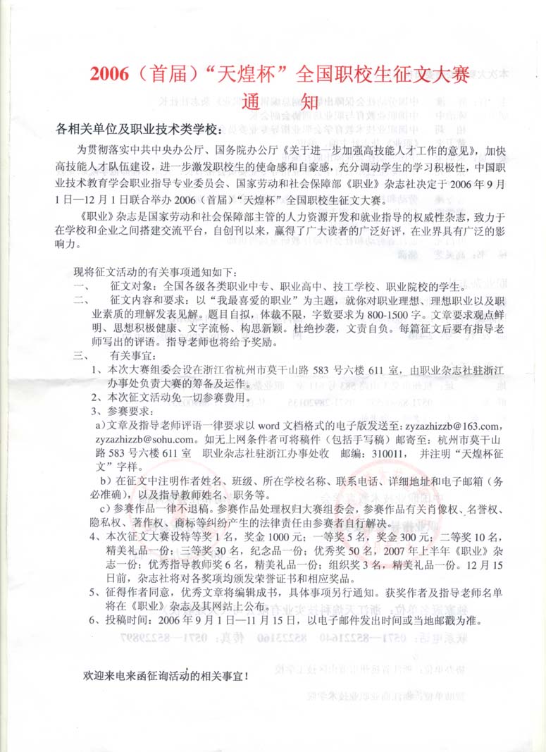 2006(首届)“天煌杯”全国职校生征文大赛通知