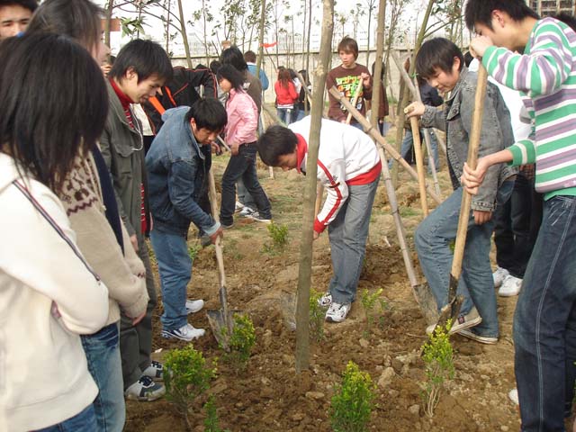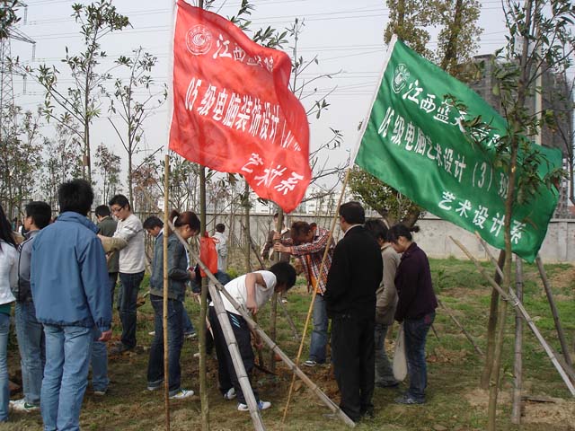 我们做为一名大学生,一定要多参加社会实践,校园活动等等.当同学们都种好了自己班级的树后,看见他们拿的自己的班牌在那里签字.远来是想把自己的名字写上去~~挂到树上,等到小树苗长成参天大树后.我们可以自豪的说.那树以前是我们班级种的.